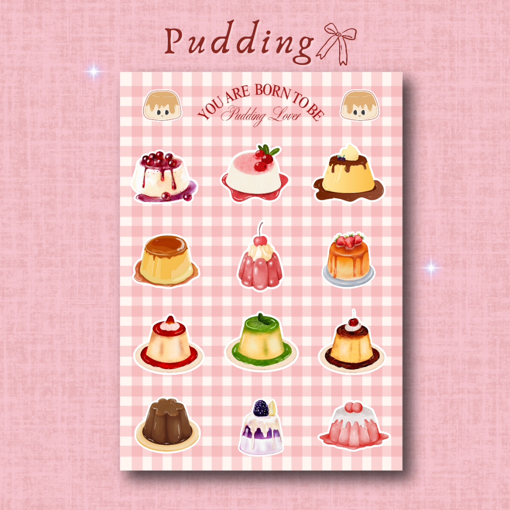Fluffy Pudding - Aesthetic Vinyl Sticker Pack with Kiss Cut (A6)
