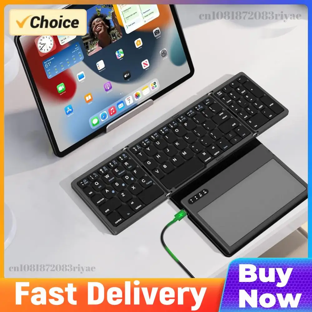 Foldable Bluetooth-Compatible Keyboard with Touchpad Portable Travel Keyboard Pocket-Sized Keyboard for Android/IOS/OS/Win/HMS