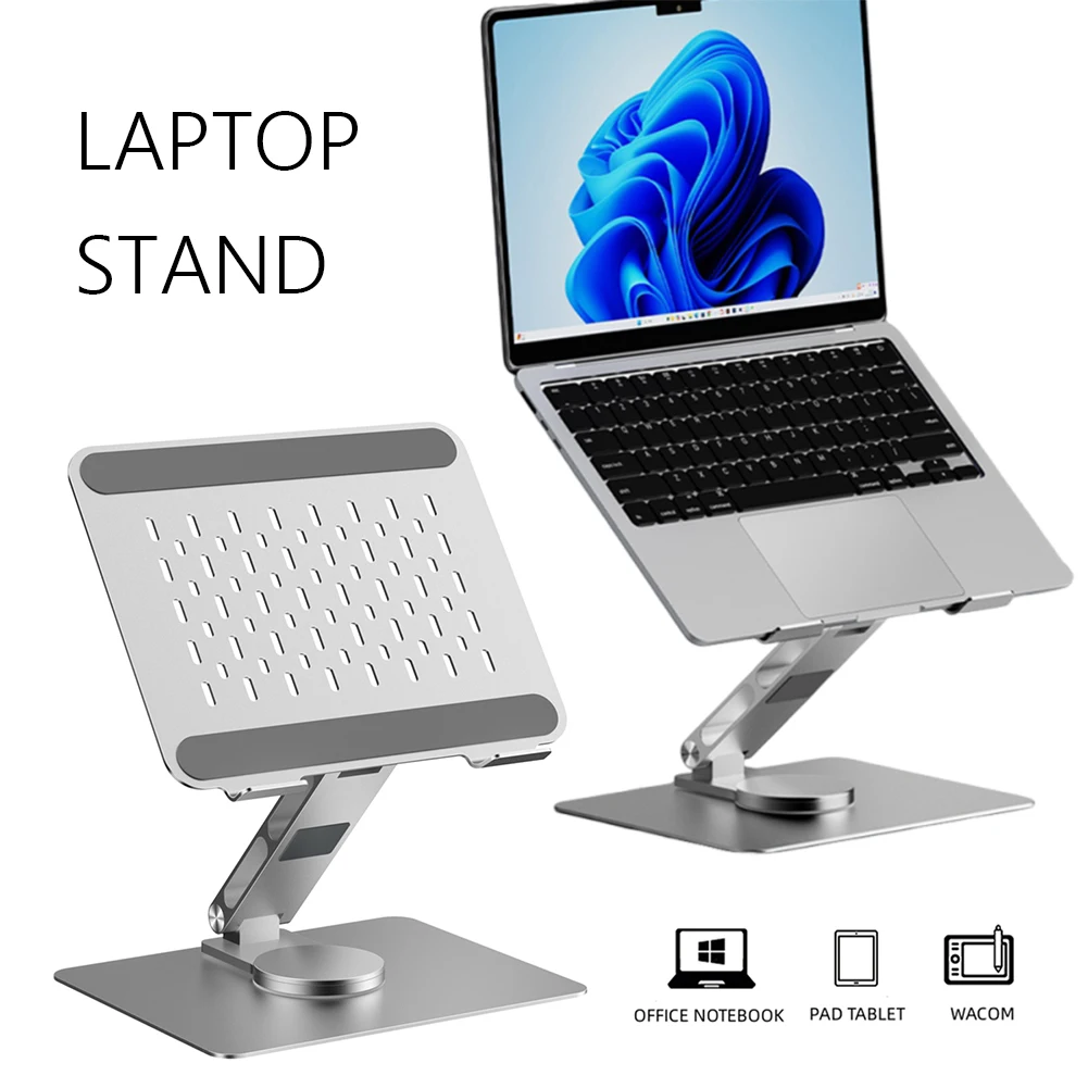 Foldable Laptop Riser with 360 Swivel Base Adjustable Computer Stand Aluminum Notebook Stand Holder for Computer Desk