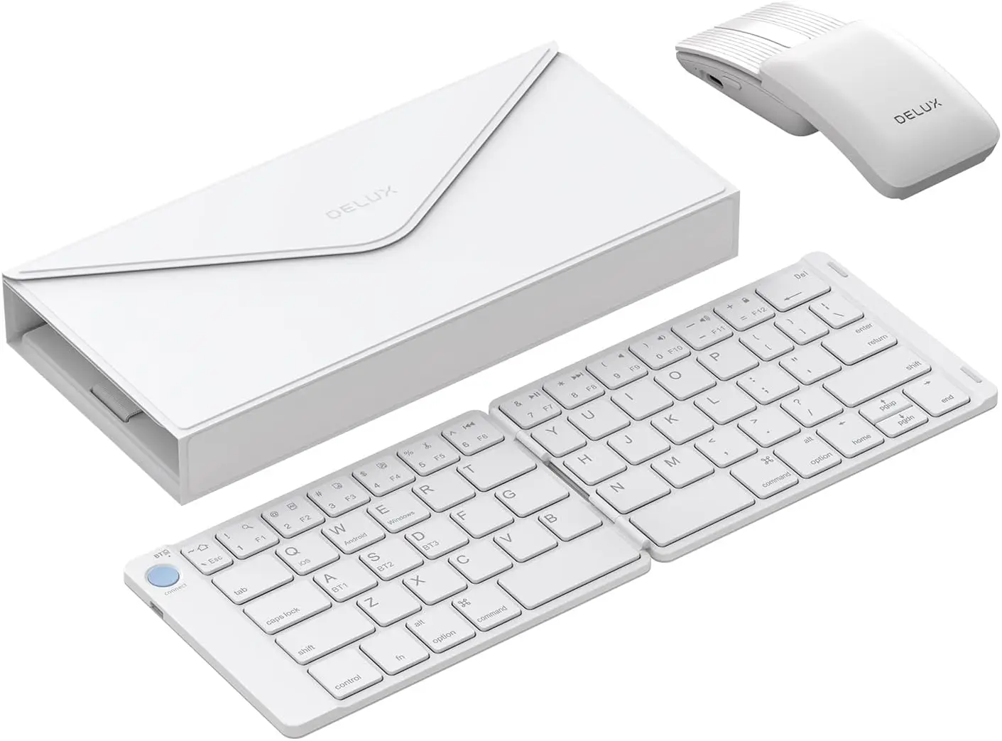 Foldable Wireless Keyboard and Mouse Combo with Protective Case, 2-in-1 Mini Sliding Pointer, Portable Lightweight (White)