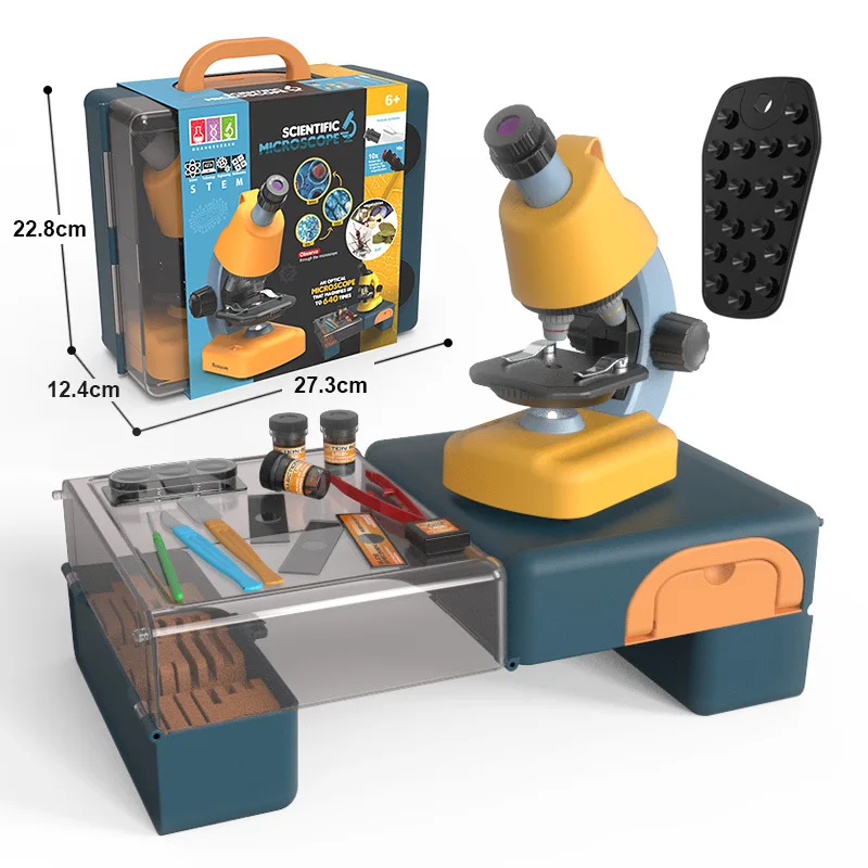 Folding Toolbox with Portable HD Children's Microscope Dual-Use Multifunctional Box
