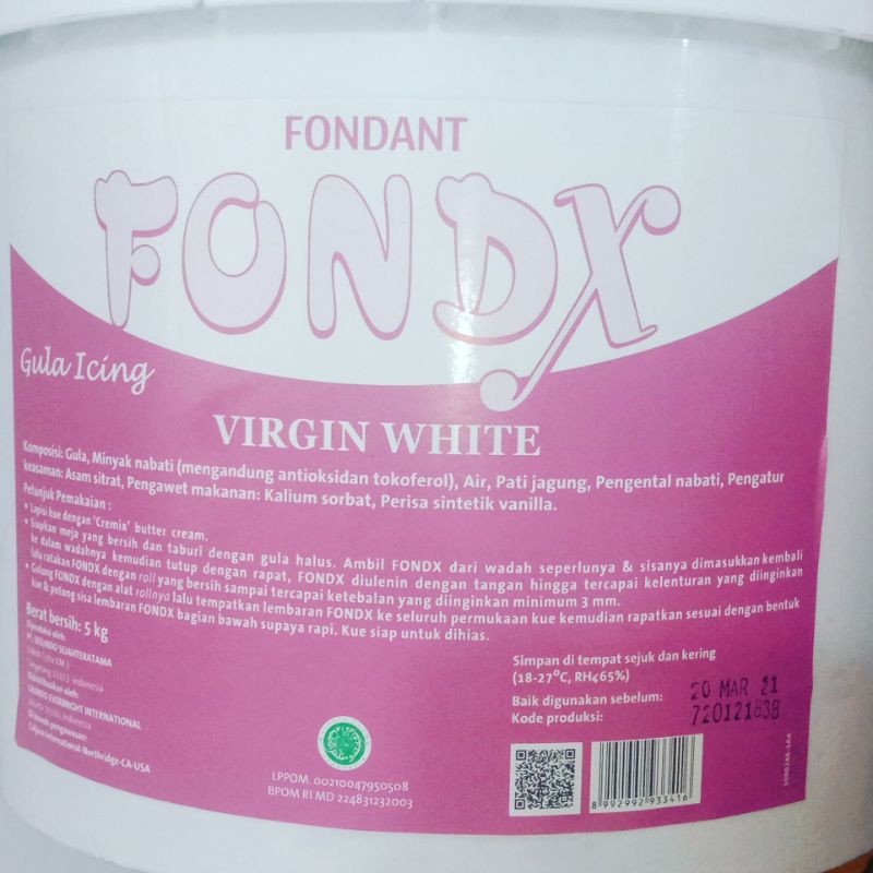 FondX Rolled Fondant sangat mudah untuk diuleni, digiling, dan dapat dengan mudah menutupi cake dengan lapisan tipis hingga ketebalan 0.3 cm. Hanya dengan 0.5 kg FondX dapat menutupi cake hingga ukuran 20 cm. Sangat tepat digunakan untuk para pemula dan hobbyists karena kemudahannya. Juga merupakan fondant giling kualitas terbaik untuk para profesional. FondX dengan rasa Vanilla ini dapat terpadu lembut dengan berbagai rasa cake, dan dapat digunakan untuk membuat pasta gum/pasta gula apabila diuleni menggunakan CMC: Fondant Stabilizer. FondX Rolled Fondant diproduksi di Indonesia. Halal.