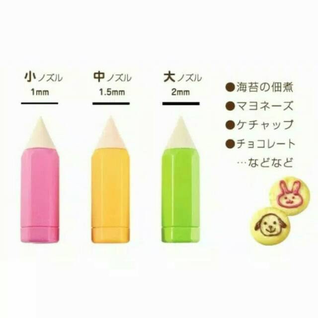 Food Drawing Pen merupakan alat untuk menghias makanan,cake/kue.Dengan bentuknya seperti pena memudahkan anda dalam menggambar atau menulis di permukaan makanan.Dapat diisi kecap,mayonaise,selai, saus,dll