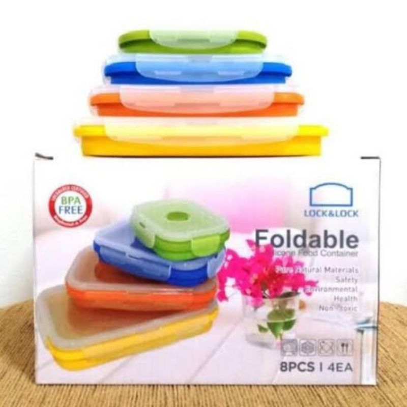 Wadah penyimpanan makanan yang eco - friendly yang mudah dibawa dan bisa dilipat sehingga mudah disimpan. Satu set terdiri dari 4 pcs dengan kapasitas 1200ml , 800ml , 540ml dan 350ml. Warna kontainernya tidak bisa dipilih. 1 box berisi 4 set container food.