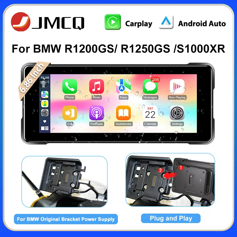 For BMW R1200GS R1250GS ADV S1000XR 6.86" Motorcycle Navigation Wireless CarPlay Android Auto IPX7 Waterproof Moto Monitor