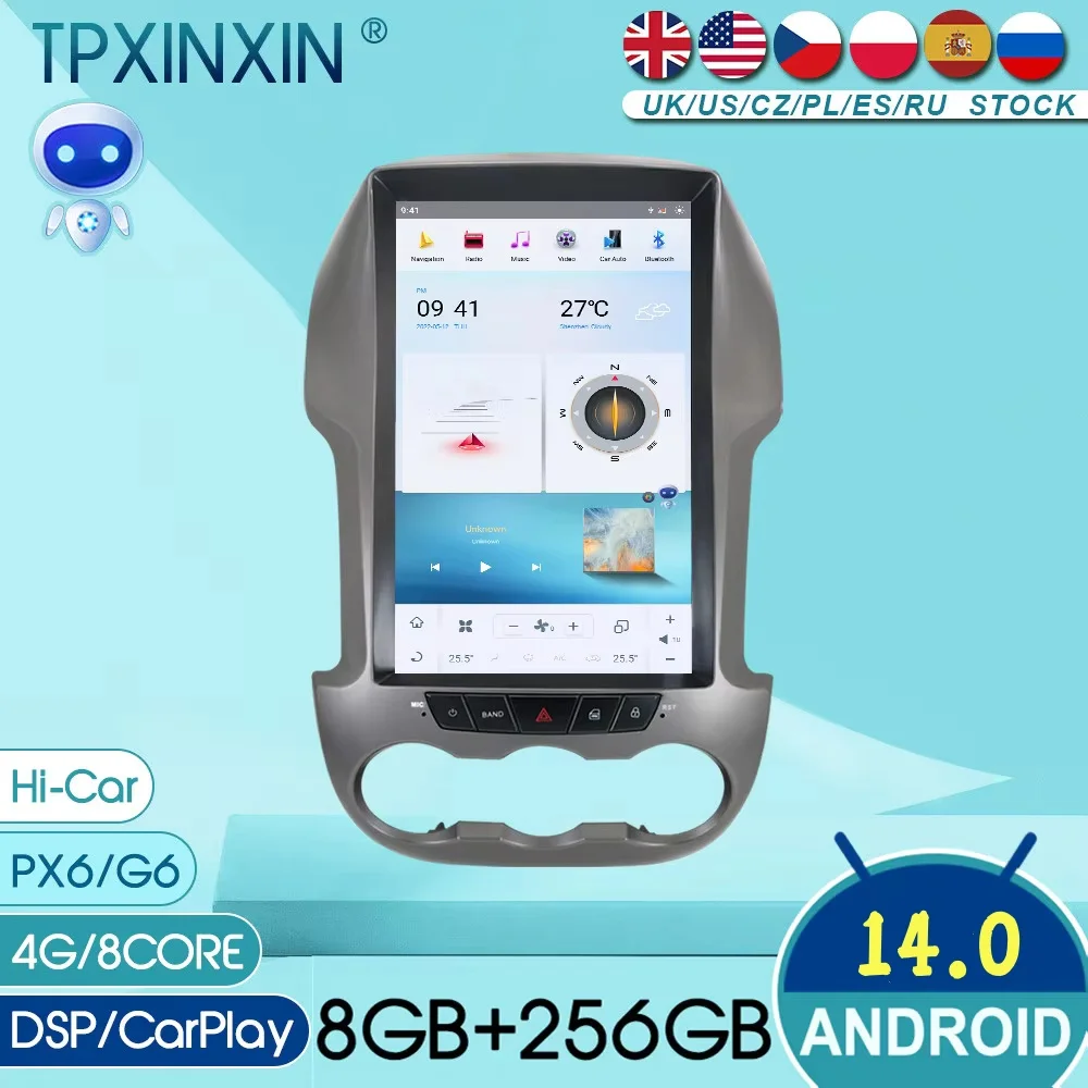 For Ford Ranger 2011-2016 Audio 2 Din Android Auto Carplay Receiver Car Radio Vertical Style Auto Multimedia GPS Navigation