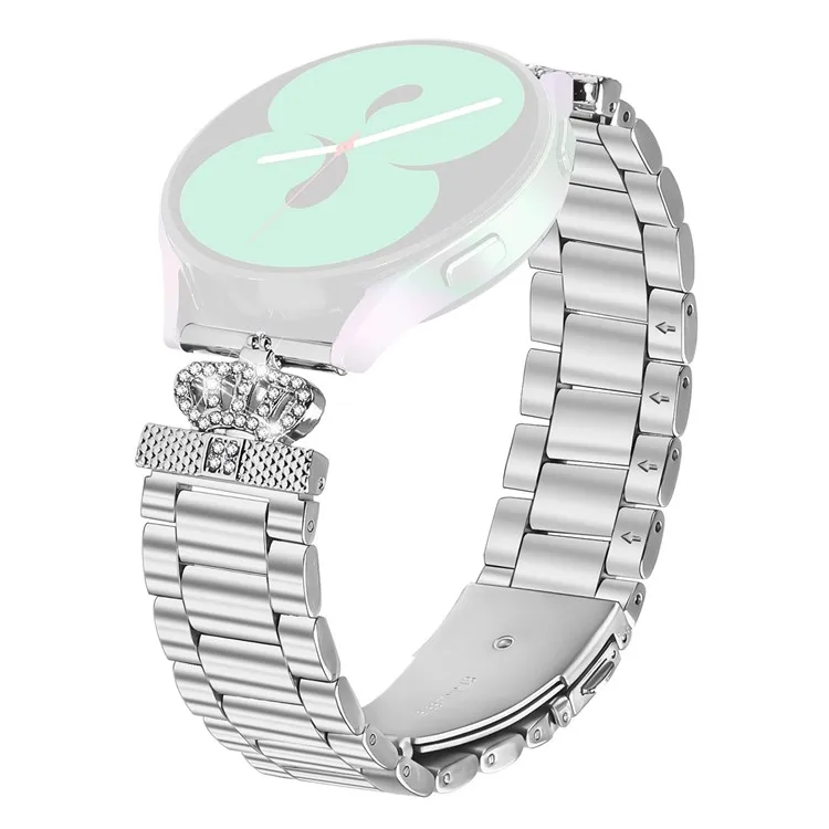 For Garmin Fenix 5S / 5S Plus Stainless Steel Strap Crown Shape Rhinestone Decor Silver Watch Band