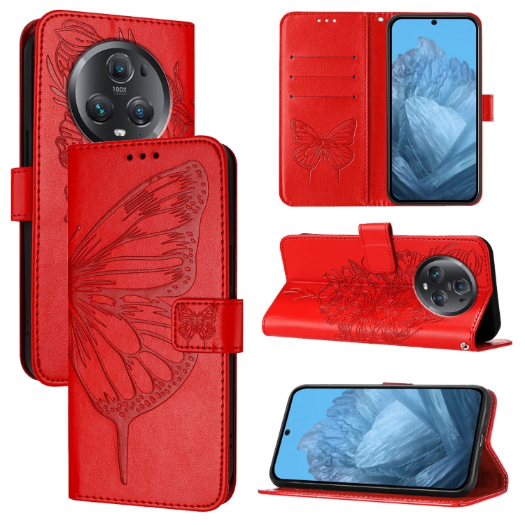 For Honor Magic5 Pro Embossed Butterfly Leather Phone Case(Red)