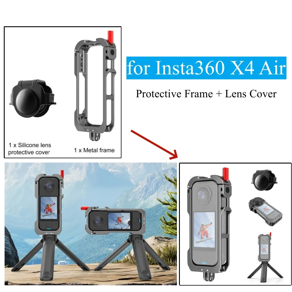 For Insta360 X4 Air Dual-Grip Action Camera Aluminum Alloy Rabbit Cage Expansion Protective Frame Silicone Lens Cover Accessory