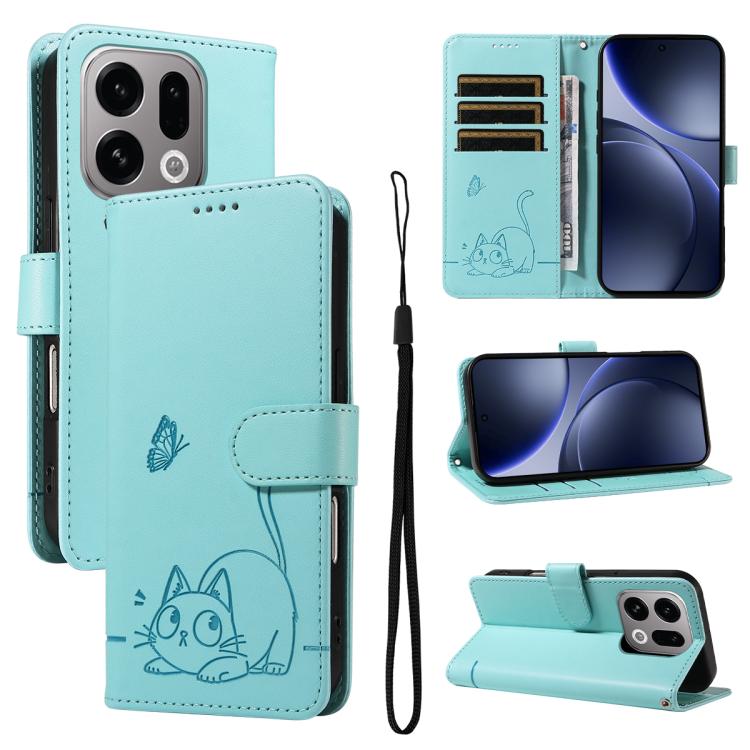 For OPPO Find X9 Adorable Cat Embossed Pattern Flip Leather Phone Case(Green)