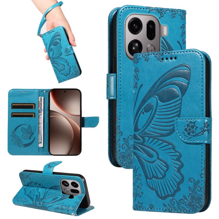 For OPPO Find X9 Pro Swallowtail Butterfly Embossed Leather Phone Case(Blue)