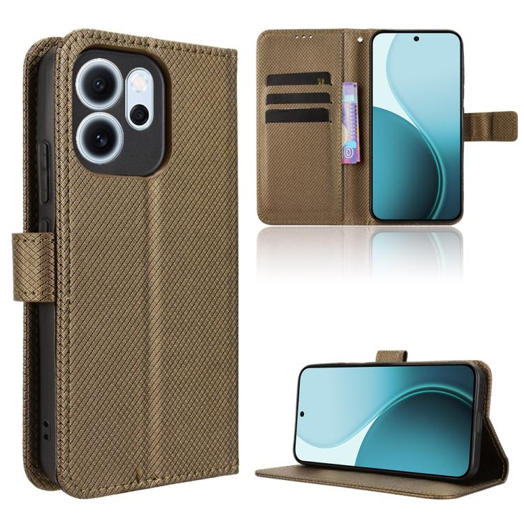 For OPPO Reno14 F 5G Diamond Texture Leather Phone Case(Brown)
