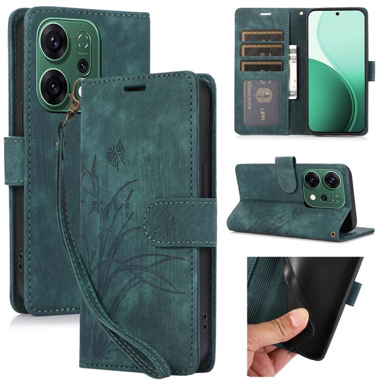 For OPPO Reno14 Pro Global Orchid Butterfly Embossed Leather Phone Case(Green)