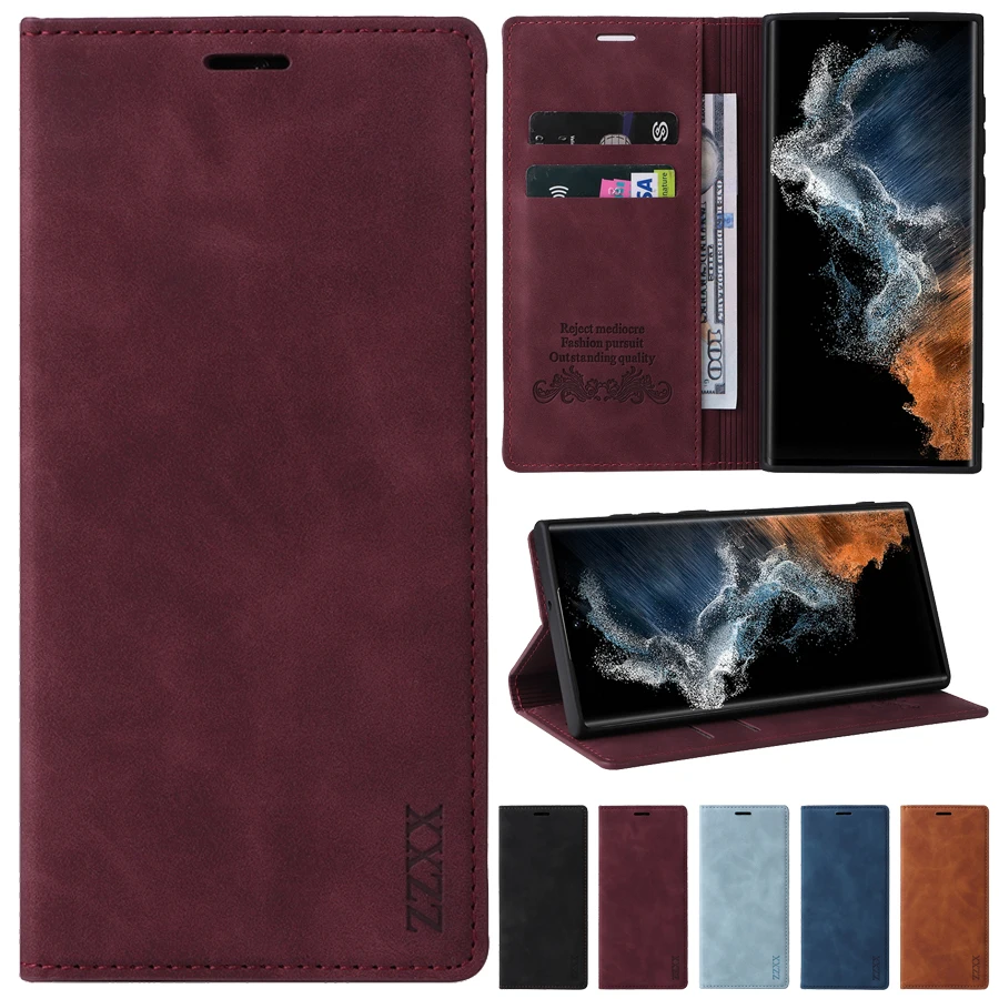 For Samsung Galaxy A12 A13 A50 A51 A52 A52S A53 S22 S21 S20 Plus Ultra FE S10E S10 S9 S8 Plus Wallet Skin Feel Flip Leather Case
