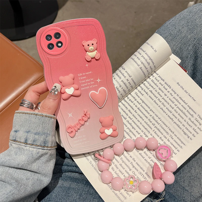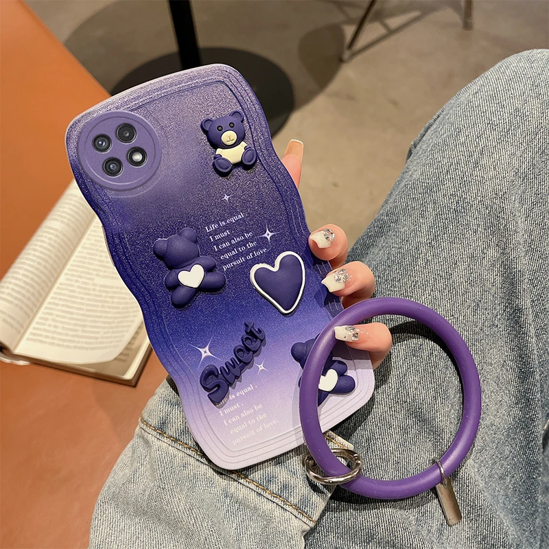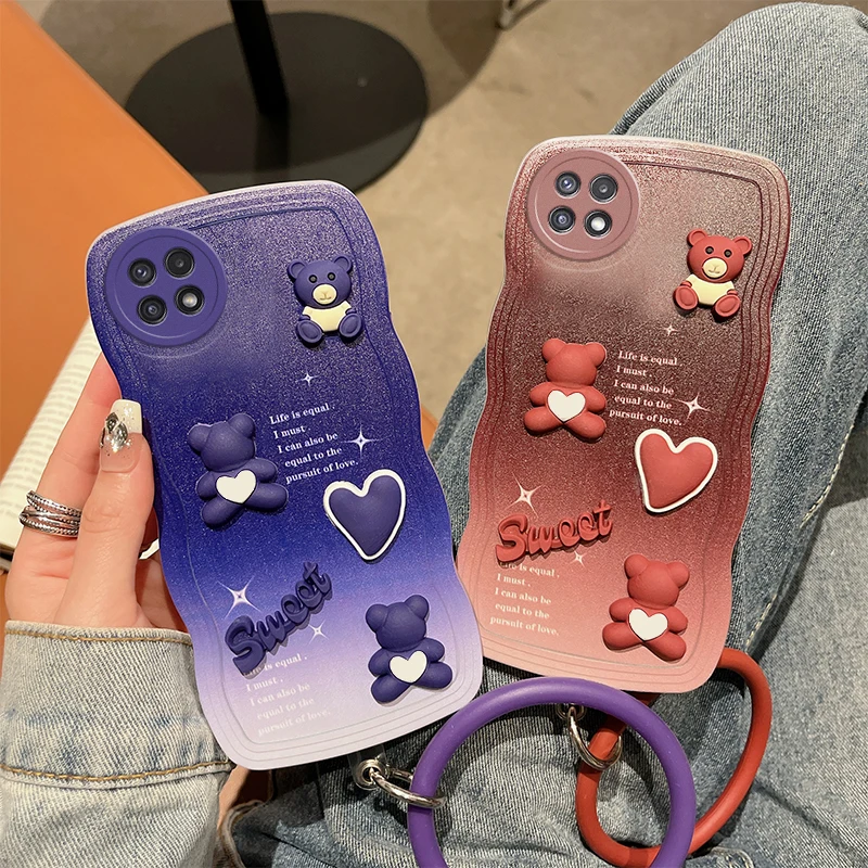 For Samsung Galaxy A22 5G Phone Case 3D Cute Cartoon Animal Fashion Soft Silicon Sport Hand Strap Bracelet Back Cover
