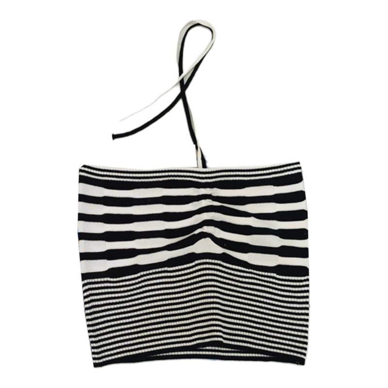 Женский сексуальный укороченный топ на шнуровке, вязаный клетчатый Топ без рукавов в полоску
