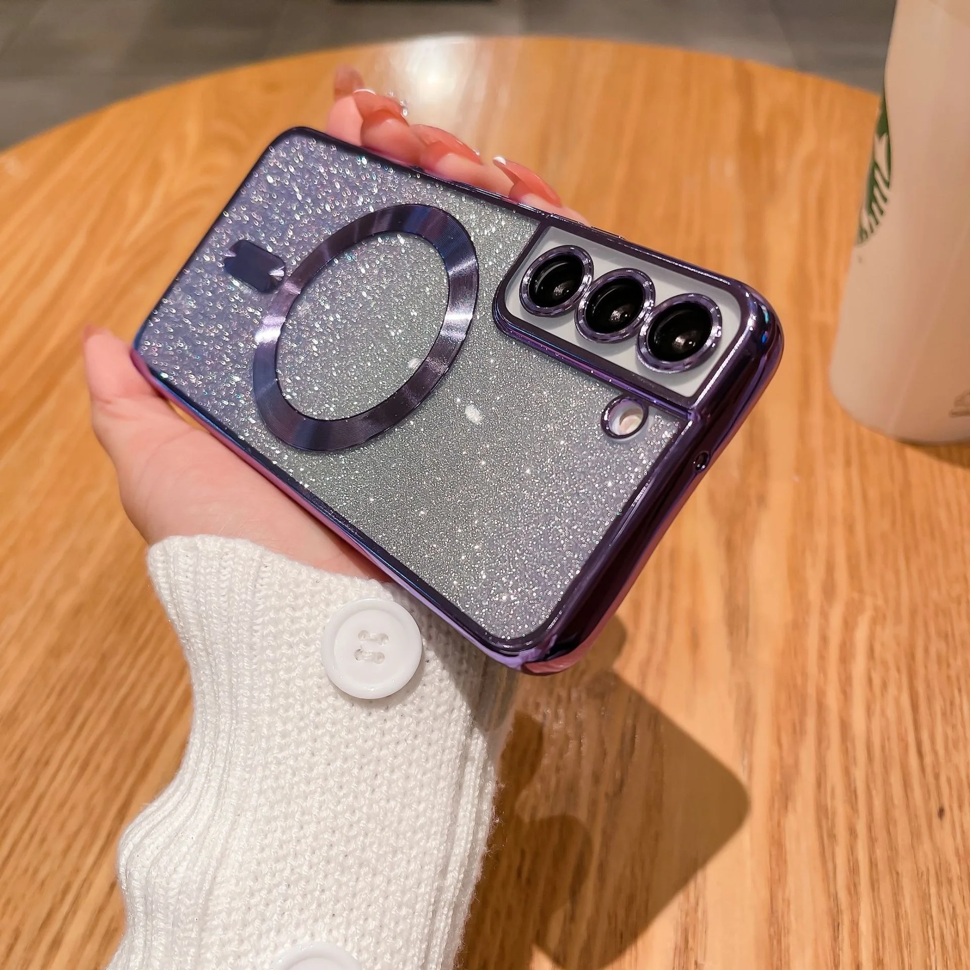 For Samsung Galaxy S23 Ultra Case S22 S21 FE Plus bag Luxury Plating Silica Gel Ring Phone Back Cover Purple Femininity Green
