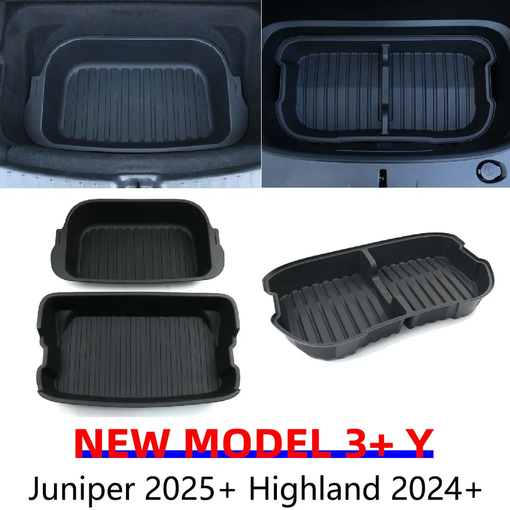 For Tesla Model Y Juniper 2025 Frunk Organizer Box Rear Trunk Double-deck Storage Box Front Cargo Dustproof Luggage Storage Tray