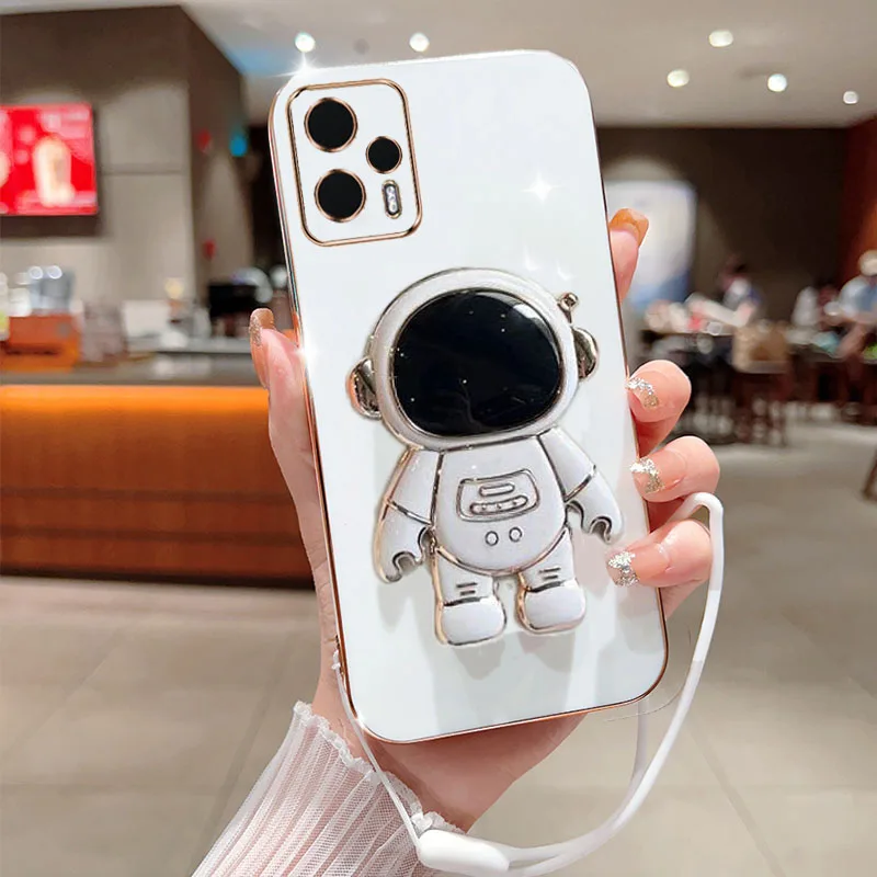 For Xiaomi Poco F5 Phone Case Astronaut Fold Stand Soft Silicone With Lanyard Luxury Plating Cover