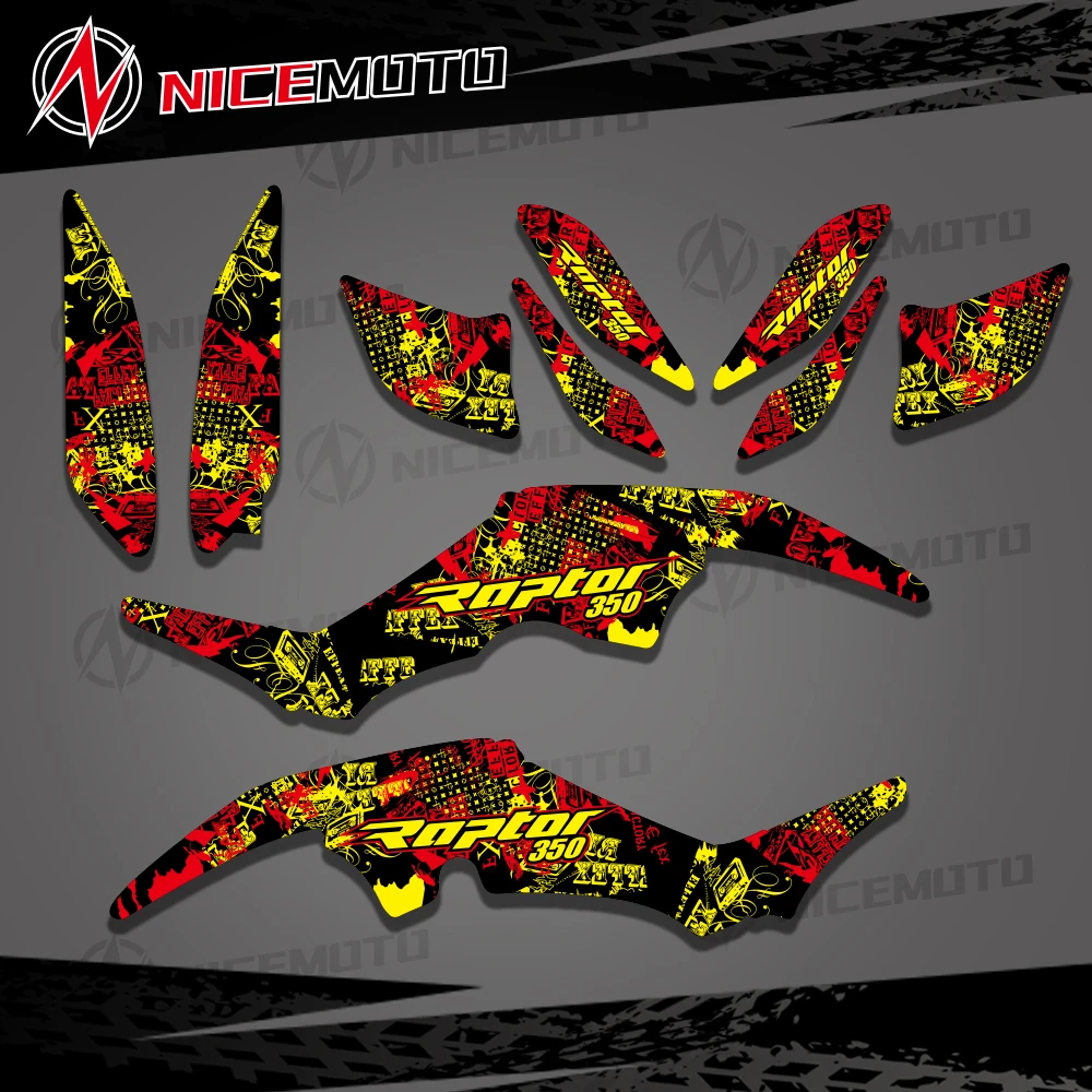 For Yamaha Raptor 350 ATV YFM350 Raptor350 Motorcycle Stickers Graphics Background Decal Kit Full Set Custom Number & Name