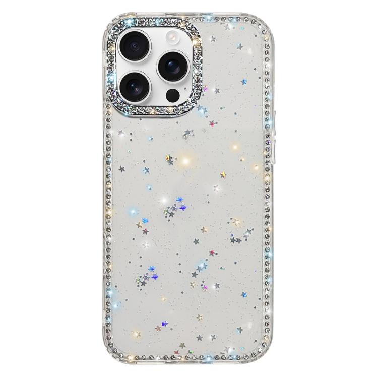 For iPhone 16 Pro Max Rhinestone Dual-side IMD PC Hybrid TPU Phone Case(Glitter Stars)