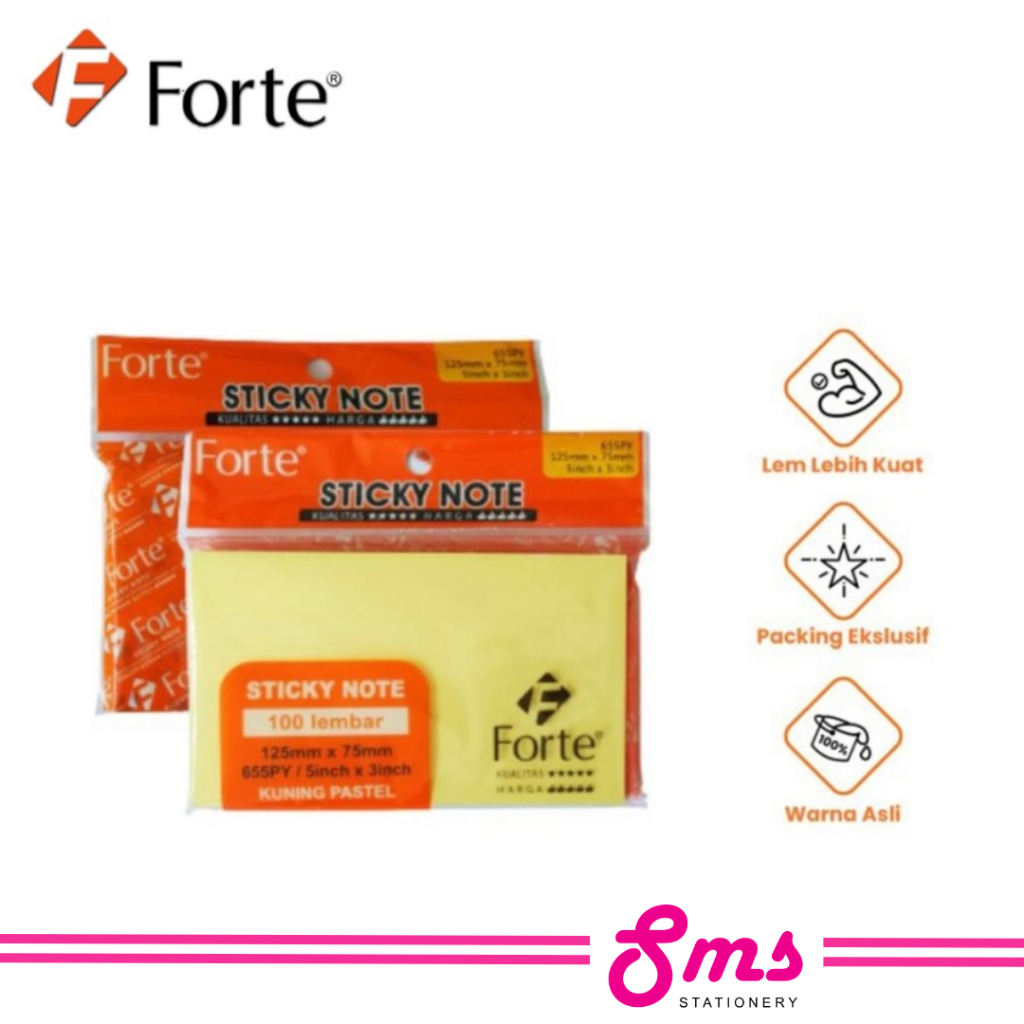 Sticky Note Forte menjadi solusi yang tepat bagi Anda untuk mencatat memo dengan mudah dengan kertas kualitas terbaik dan dapat ditempel dimana saja. Catatan-catatan penting kini lebih sistematis dan mudah dilihat dengan Sticky Note Forte!