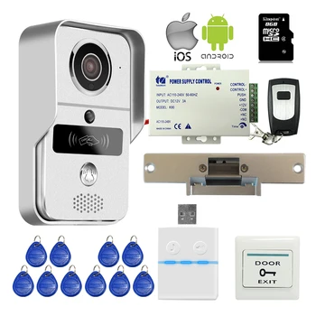 Free Shipping Wireless Wifi IP RFID Doorbell Camera Video Intercom for Phone PC Remote View Unlock + Strike Door E-Lock + 8G TF