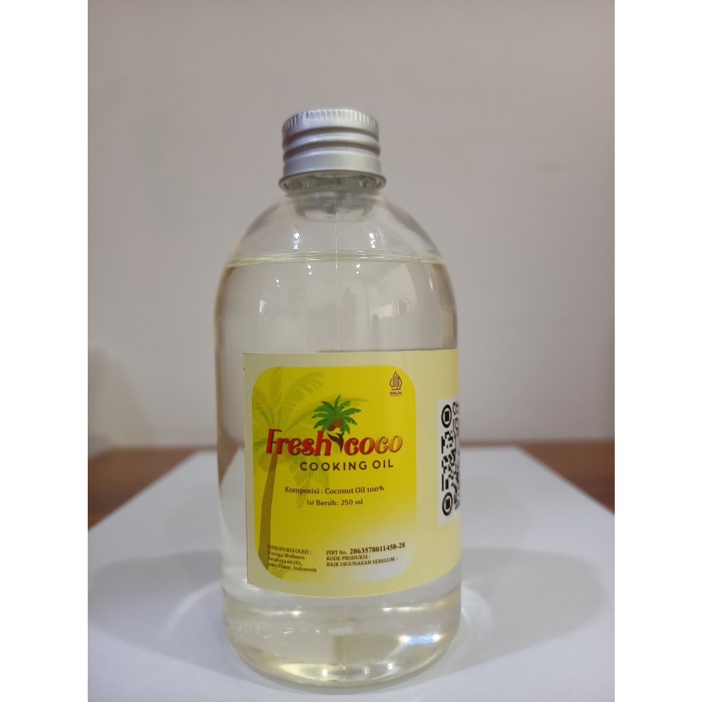 Fresh Coco Cooking Oil, merupakan minyak goreng yang terbuat dari kelapa murni segar. Bukan dari kelapa yang dikering/dijemur, sehingga warnanya lebih jernih dan bening, memiliki aroma yang lebih soft, sehingga tidak mengganggu cita rasa makanan.