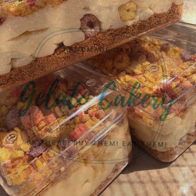 Layered with Regal crumb, Pastry cream, and Cereal froot loops