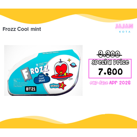 Permen rasa cool mint dengan sensasi dingin menyegarkan dan bebas gula, dalam kemasan pot 15 g.