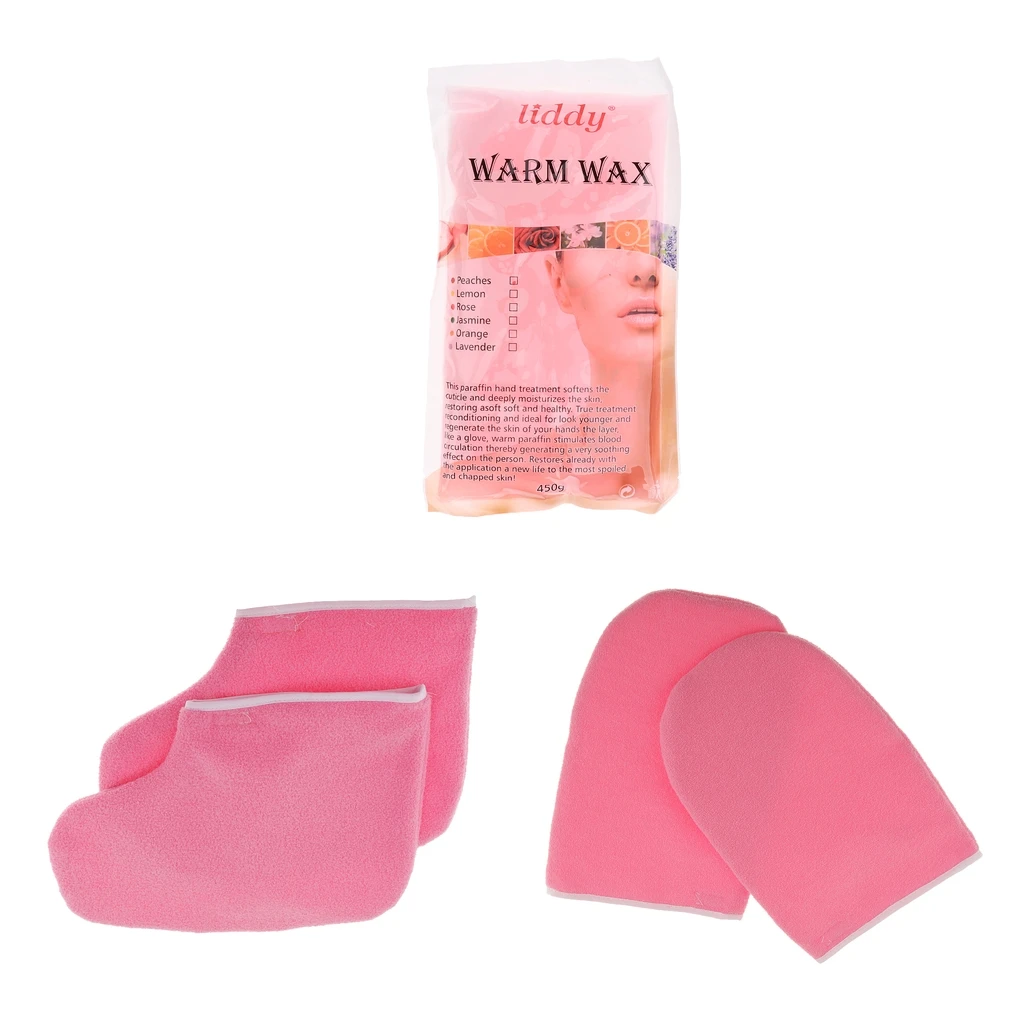 Paraffin Wax Bath Terry Cloth Gloves Booties, Wax Cotton Mittens and 420g Peach Flavor Antibacterial Paraffin Waxing Cream