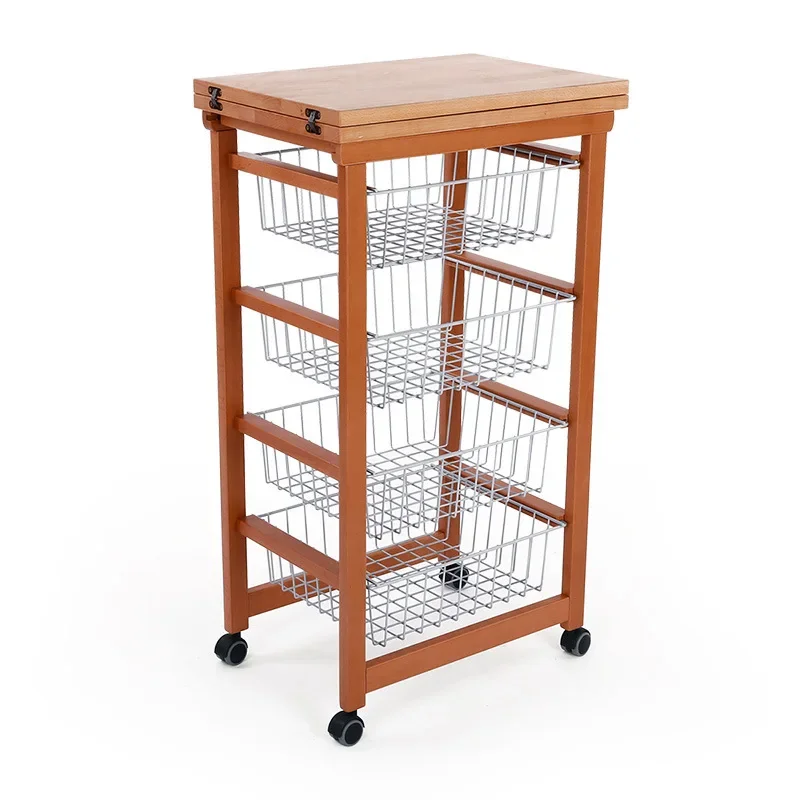 Fruit and vegetable storage cart Foldable mobile solid wood dining table Kitchen rack