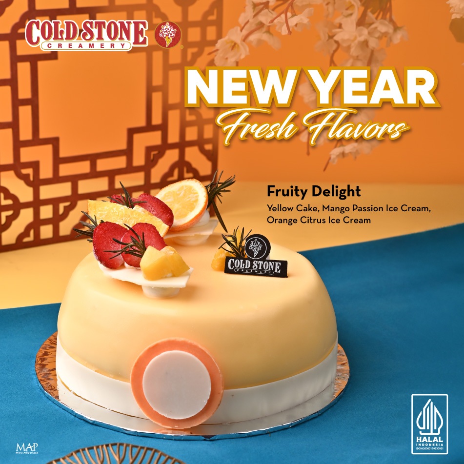 Layers of moist Yellow Cake with Mango Passion Ice Cream & Orange Citrus Ice Cream
