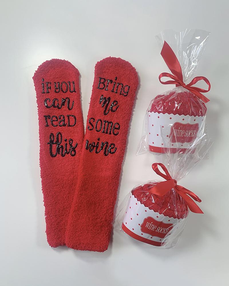 Funny Letter Print Crew Socks, Red