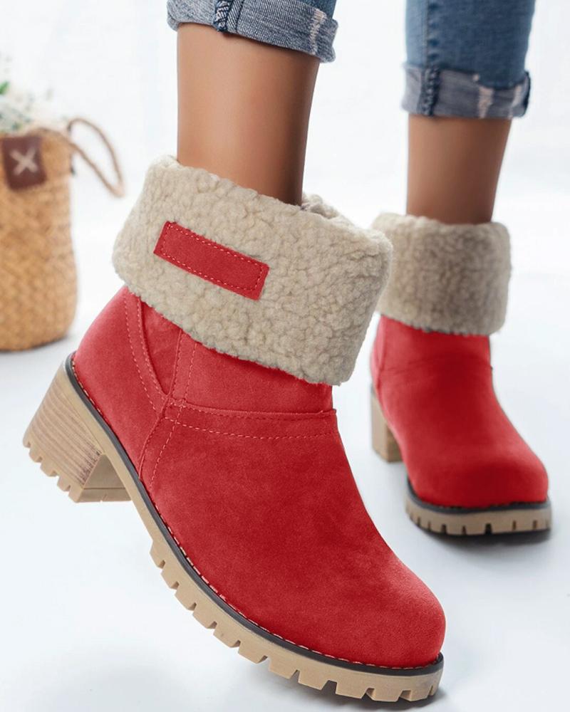 Fuzzy Fleece Lined Ankle Boots, Red