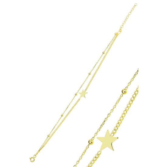 Gümüş altın yaldızlı gurmet ve top top çift zincirli yıldız bileklik