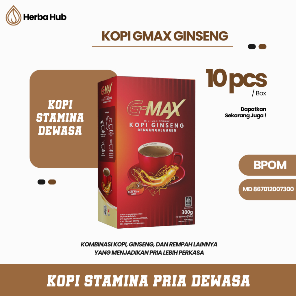 G-MAX KOPI STAMINA GINGSENG/GINSENG RASA GULA AREN TOPCER (ISI 10pcs)