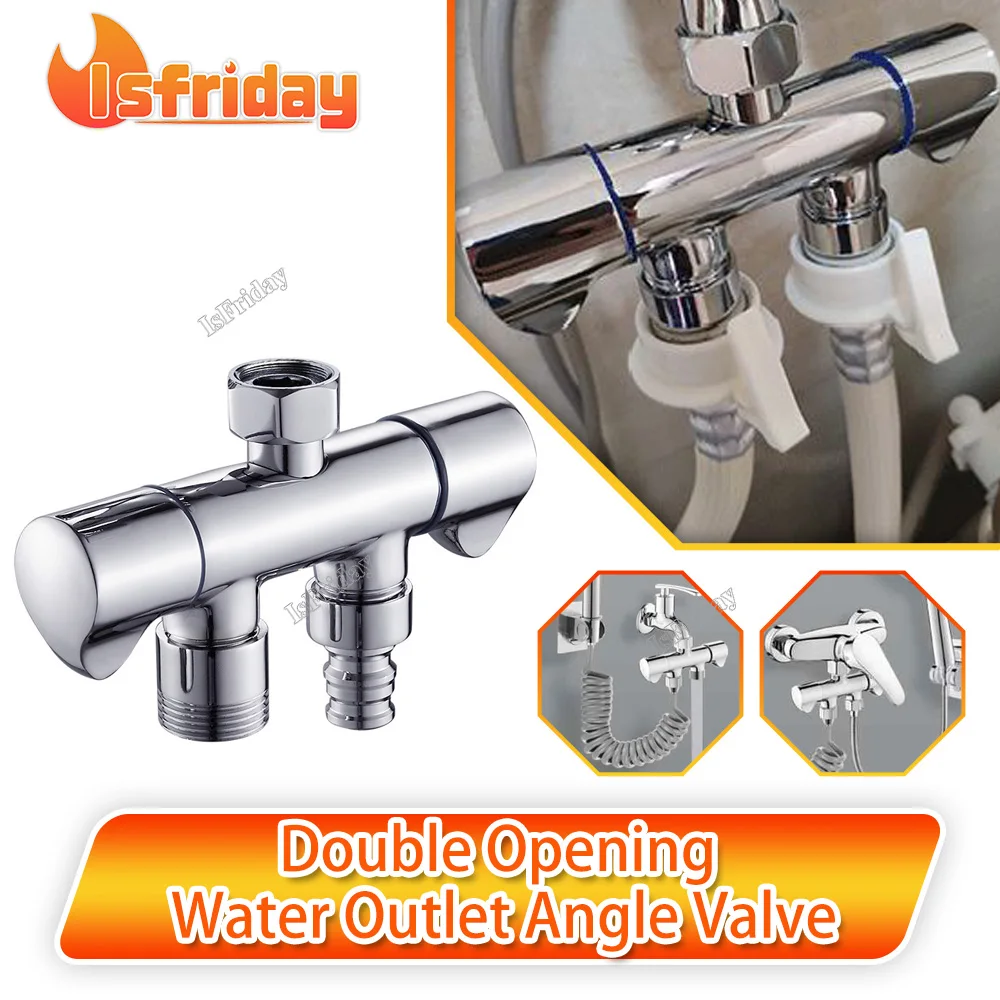 G1/2, медный двойной угловой клапан для водоотвода, кран для ванной комнаты, клапан подачи воды для стиральной машины, аксессуары для ванной комнаты