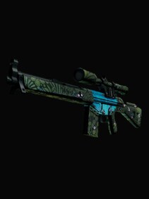 The pricy G3SG1 lowers movement speed considerably but compensates with a higher rate of fire than other sniper rifles. A green forest gives way to a blue sky at the center of this custom paint job. "There, a clearing in the forest!"