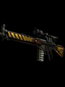 The pricy G3SG1 lowers movement speed considerably but compensates with a higher rate of fire than other sniper rifles. Originally green, parts of the weapon have been replaced with street signs and a tomato can.