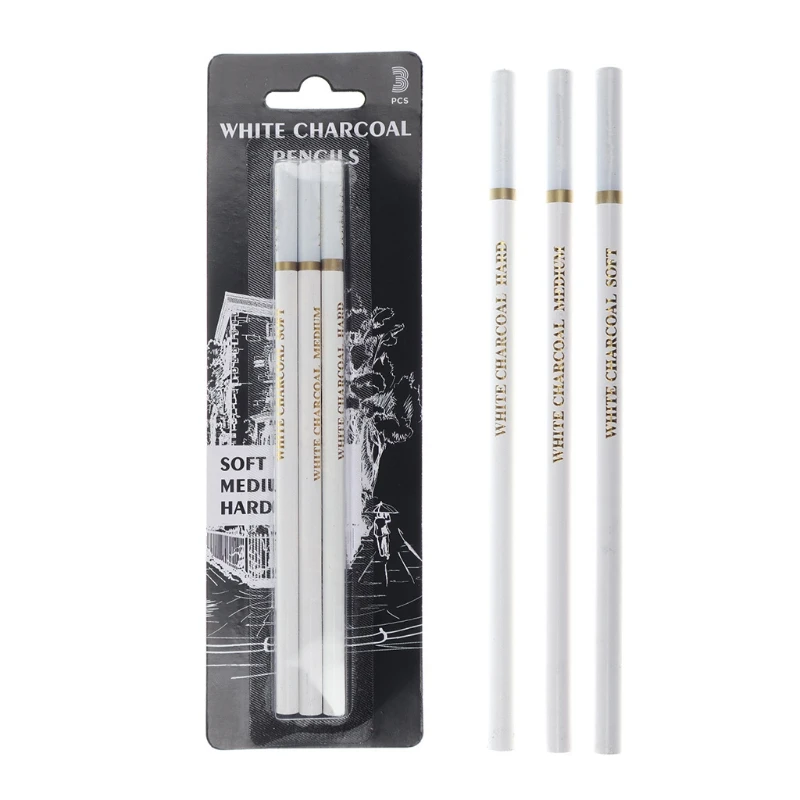 G5AA 3 шт., профессиональные белые угольные карандаши, набор белых меловых карандашей для начинающих художников, студентов,