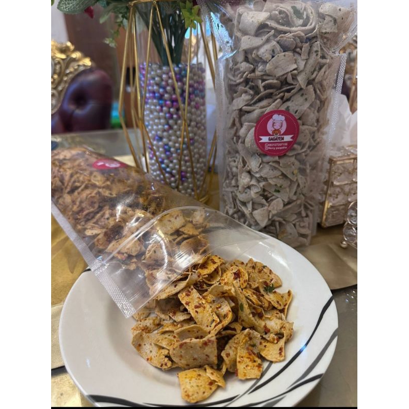 basreng ikan dengan variasi rasa pedas manis ada rasa daun jeruk nya, dan ada rasa original
