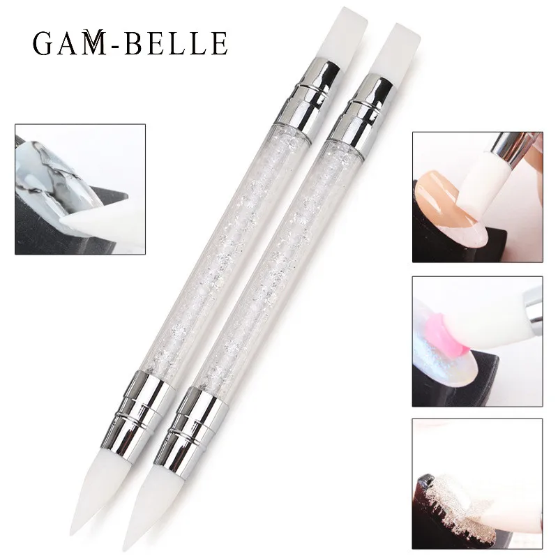 GAM-BELLE, 1 шт., двухсторонняя силиконовая головка, кисть для дизайна ногтей, Dotting Pen, 2 способа, 3D резьба, скульптура, ручка для дизайна ногтей, Ман...