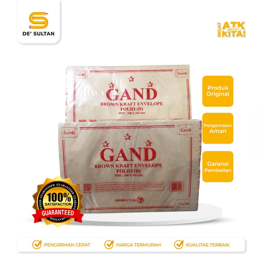 Amplop coklat folio dari Gand ini cocok untuk kebutuhan pengiriman dokumen penting. Satu pack berisi cukup amplop dengan kualitas yang tahan lama dan aman untuk dokumen.