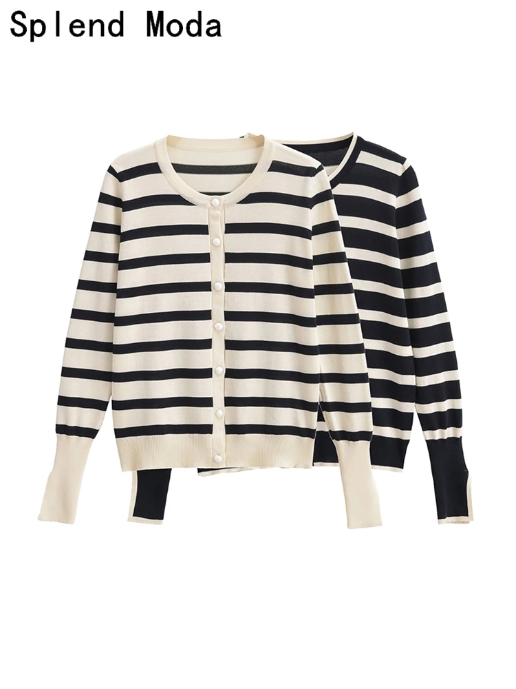 2023 Women Autumn Fashion Street Style Striped Knitted Cardigan Casual Long Sleeve Sweater Chic Single-breasted Knitwear TRAF