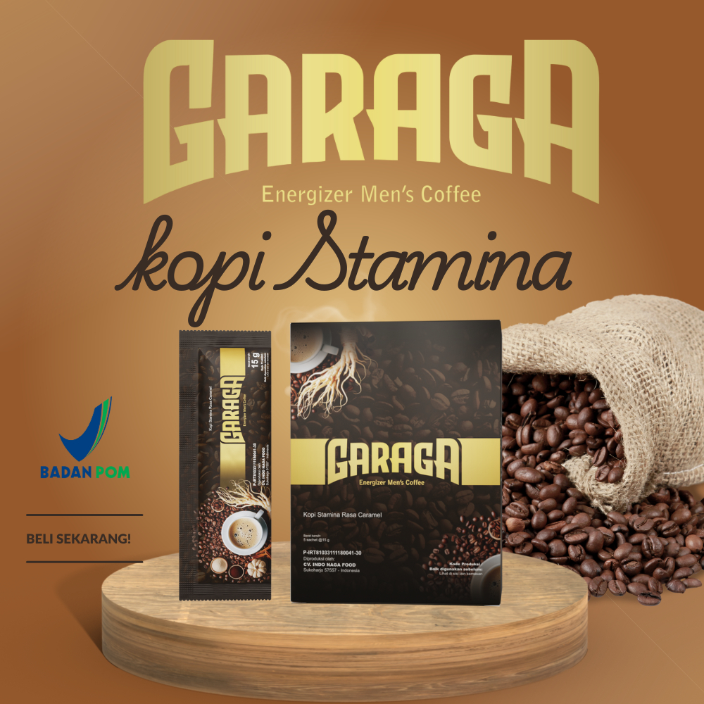 Kopi Garaga diracik khusus untuk pria. Mengandung 4 bahan herbal yang telah lama