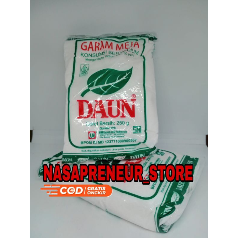 GARAM DAPUR atau GARAM MEJA cap DAUN. harga di atas merupakan harga untuk 1 bungkus garam meja daun 250 gram
