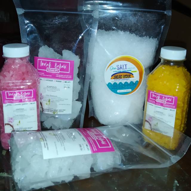 Larutkan 5 sendok Garam SPA " INDAH BAHARI " Ke dalam air hangat, gunakan untuk mandi, berdiam selama kurang lebih 30 menit, kemudian bilas dengan air bersig