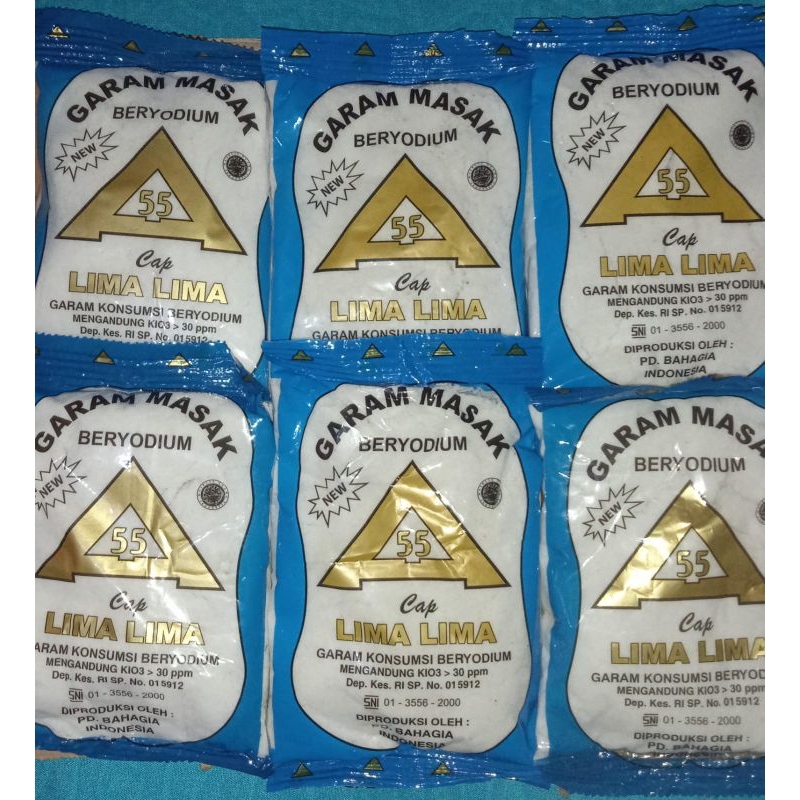 Garam masak cap lima - lima,sangat cocok untuk tambahan pada makanan baik untuk dirumah ataupun restoran karena garam lima lima,ini mengandung yodium maka dapat mencegah penyakit gondok