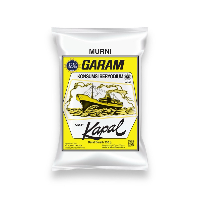 Garam Murni Cap Kapal garam halal mengandung yodium yang dapat langsung digunakan untuk menambah cita rasa masakan.